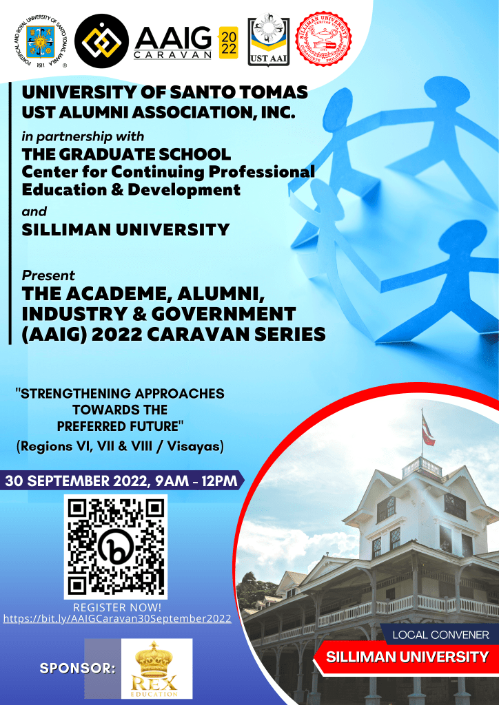 This event is brought to you by the University of Santo Tomas Alumni Association Inc. (USTAAI), in partnership with the UST Graduate School Center for Continuing Professional Education and Development (UST GS CCPED), and with REX Education as the major sponsor.